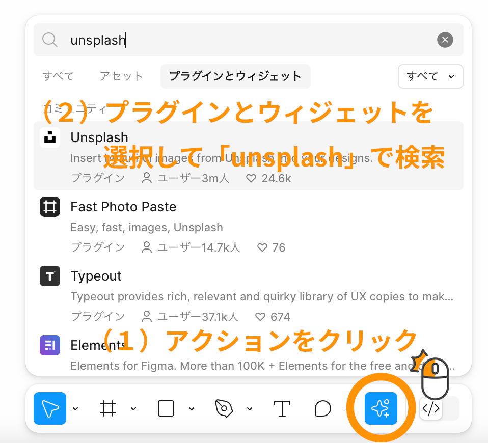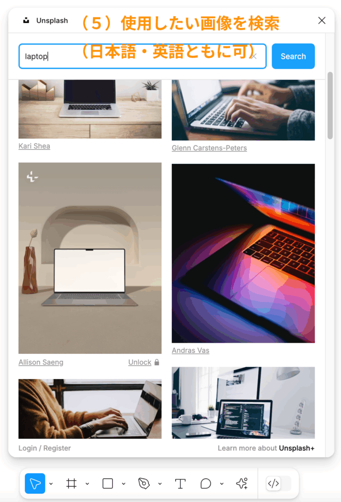 Unsplashで提供している商用利用可の写真を、Figma内で使用できるプラグイン。